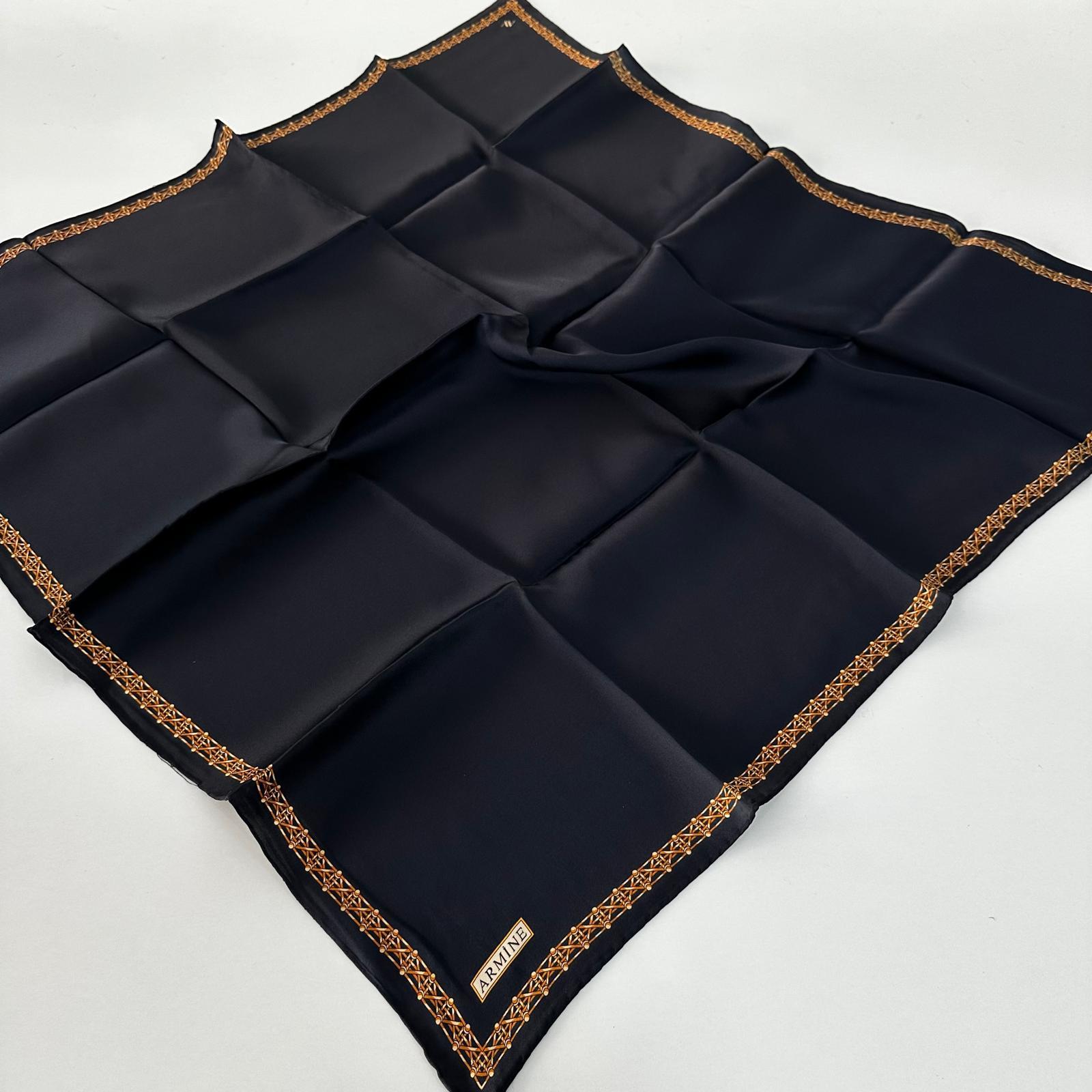 Armine Sura Saf İpek Lacivert-Gold Eşarp 24-25 Sonbahar Kış Sezonu PKT2904